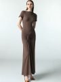 Effortless elegance in every stitch. This chocolate-brown figure-hugging gown is made to sculpt, flatter, and impress , from intimate dinners to glamorous soirées.