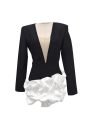 A bold expression of contrast and confidence, this mini dress fuses sharp tailoring with sculptural softness, turning elegance into a statement.