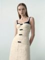A poetic blend of structure and softness , this ivory bouclé midi dress features delicate black bows and a corset-style bodice, capturing timeless femininity with a modern twist.